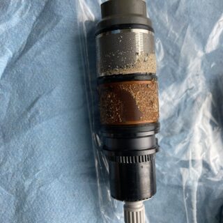 点検を行い、結果として水栓本体内にある温度調整を行う「カートリッジ(温度調整バルブ)」の故障が原因でした。